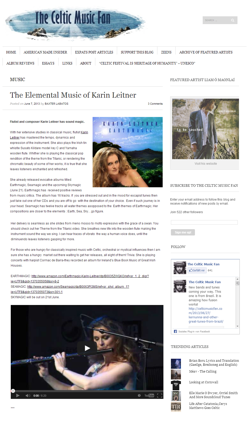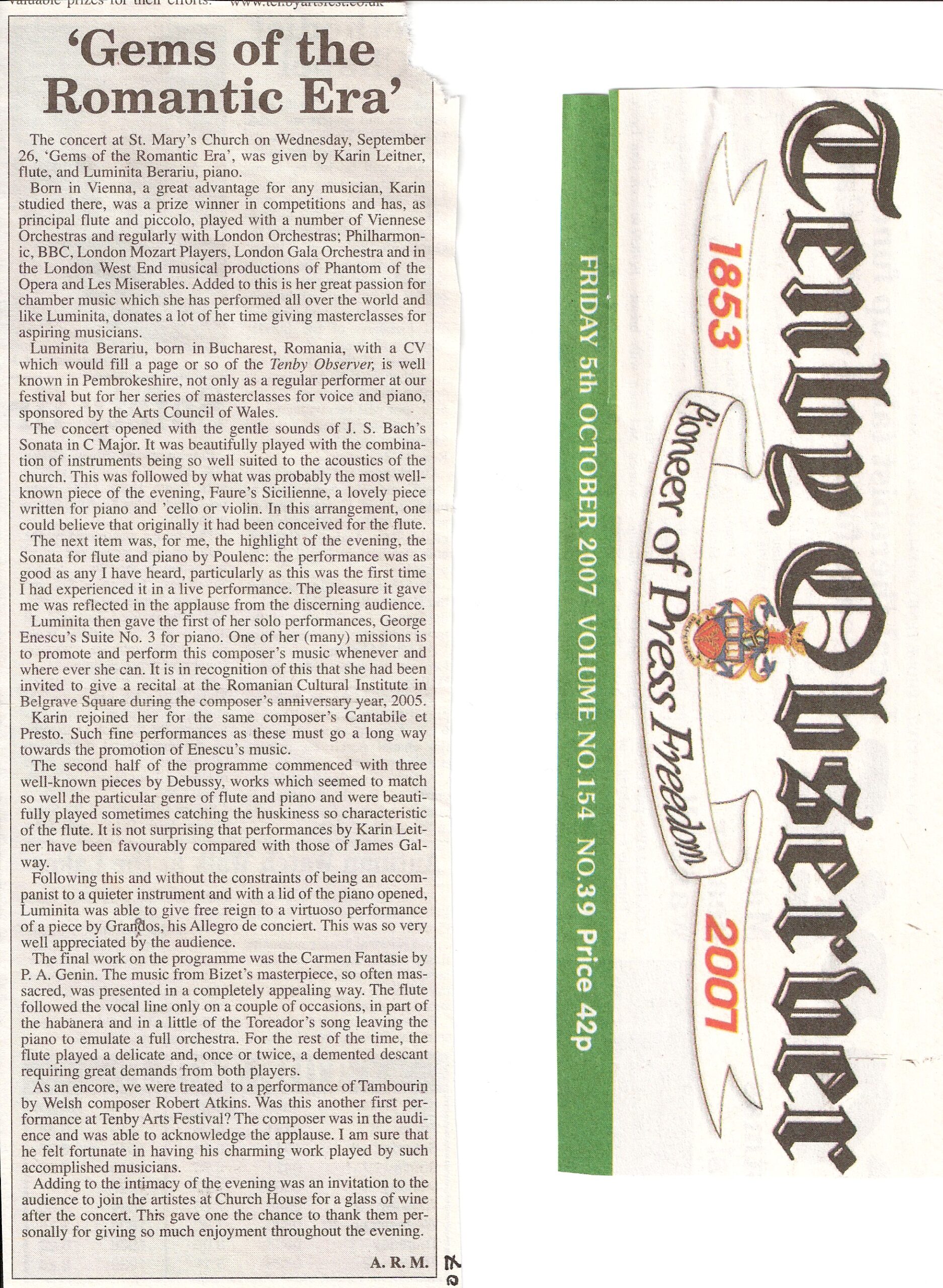 “…It is not surpirising that performances by Karin Leitner have been favourably compared with those of James Galway…” Tenby Observer, Wales 2007