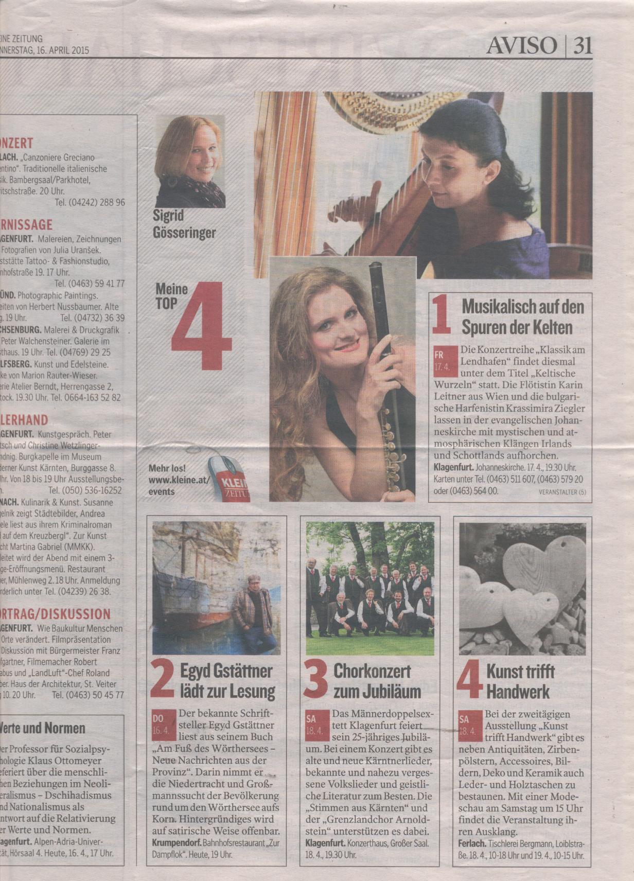 ” … “Carneval von Venedig” …der hervorragenden Flötistin schienen technische Grenzen fremd zu sein.”(PLANSEE, Tirol, Abokonzerte, Ausserferner Nachrichten, 2005)